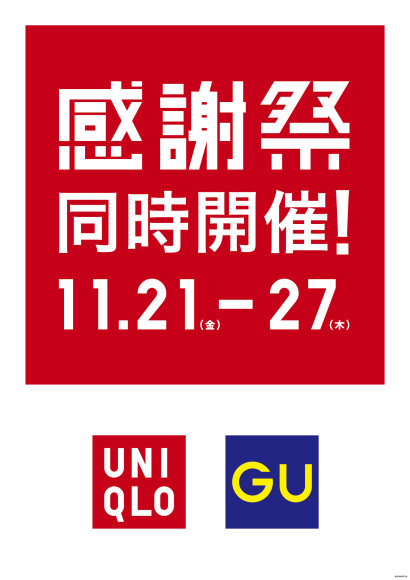 『ユニクロ・GU感謝祭』11/21(金)~27(木) 開催中‼✨