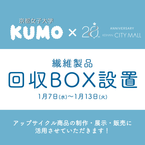 京都女子大学とのコラボレーションとして、お客さまの不要になった繊維製品を回収するBOXを設置いたします✨