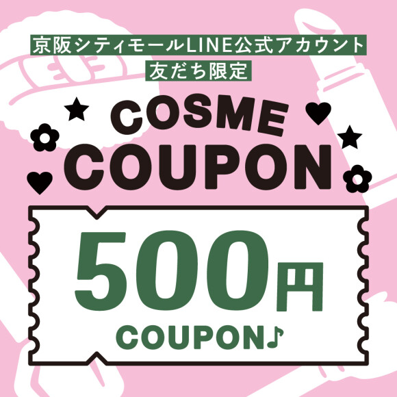 対象のコスメ店舗で、3,300円(税込)以上のお支払いで利用できる500円クーポンを配信中🎫💛
